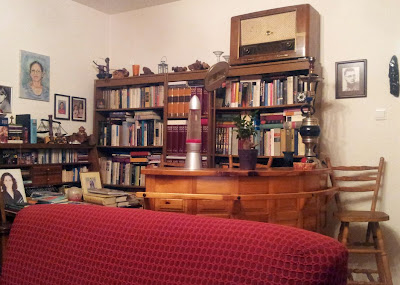 Baš lepo radno ćoše - malo podseća na muzej. Šumovit pogled kroz prozor - potrebni i dovoljni razlozi za lepe postove....Komplimenti!